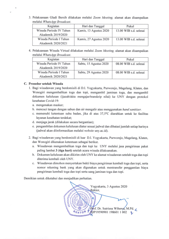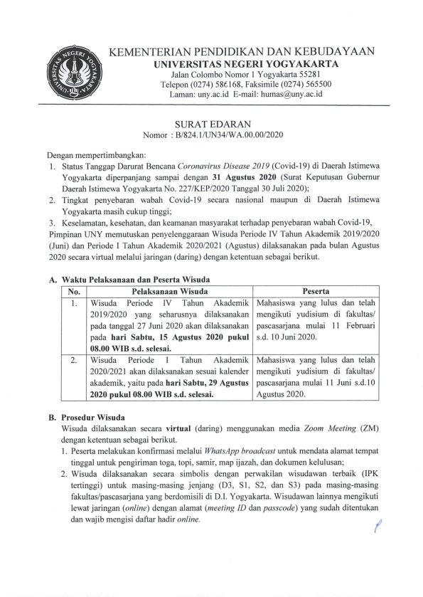 Info Wisuda UNY Periode IV TA 2019 - 2020 dan Periode I TA 2020 2021