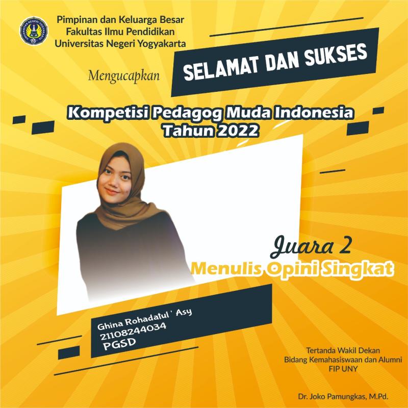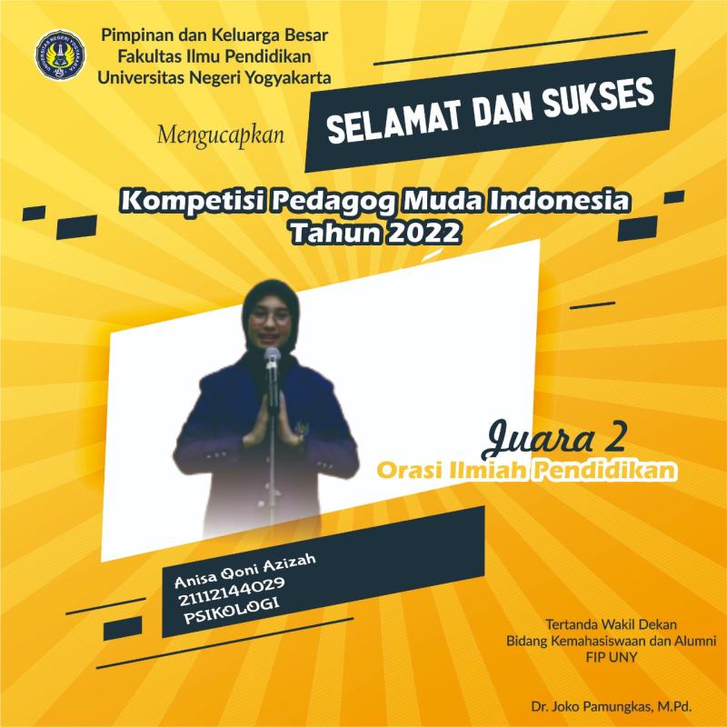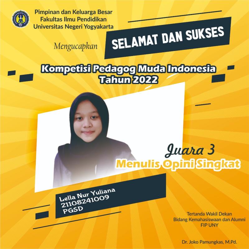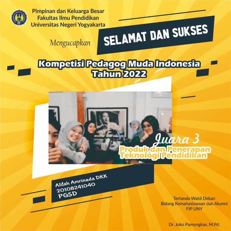 Prestasi Mahasiswa FIP UNY dalam Kompetisi Pedagog Muda Indonesia (KPMI) tahun 2022