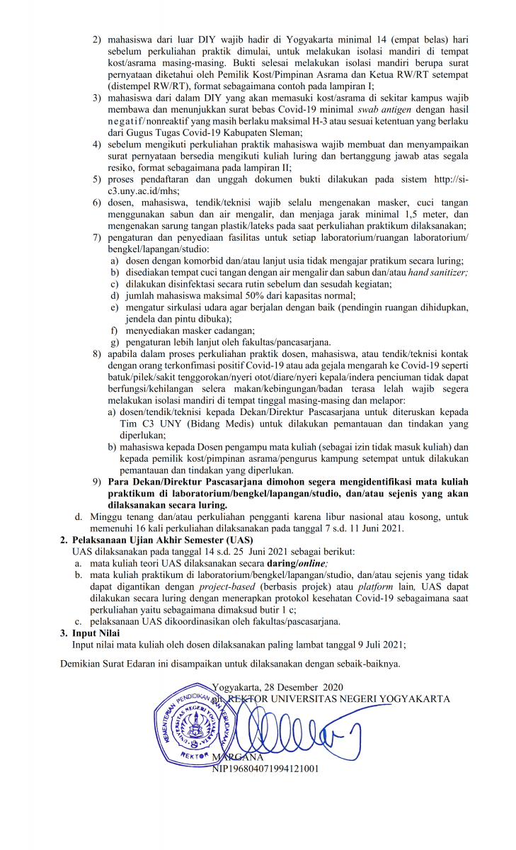 SURAT EDARAN NOMOR: 26/SE/2020 TENTANG PELAKSANAAN PERKULIAHAN SEMESTER GENAP 2020/2021