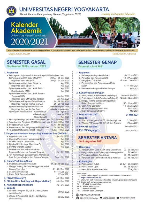 Kalender Akademik UNY Tahun Akademik 2020/2021