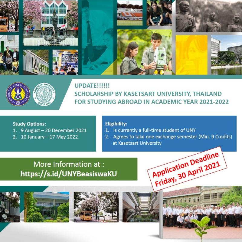 Submitted by admin_fip on Fri, 2021-04-23 13:02Peluang Beasiswa dari Kasetsart University Thailand for Studying Abroad in Academic Year 2021 - 2022